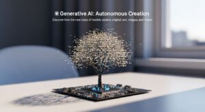 No campo da imagem e do vídeo gerado por IA, a tecnologia utiliza arquiteturas como Generative Adversarial Networks (GANs) ou modelos de Difusão. Um modelo de Difusão, por exemplo, aprende a reverter um processo de “ruído” aplicado a imagens. Começa com uma tela de pixels aleatórios (ruído) e, com base no prompt de texto, remove gradualmente esse ruído, passo a passo, até que uma imagem coerente e detalhada surja. O resultado é a capacidade de gerar vídeo gerado por IA com qualidade cinematográfica a partir de comandos de texto simples.